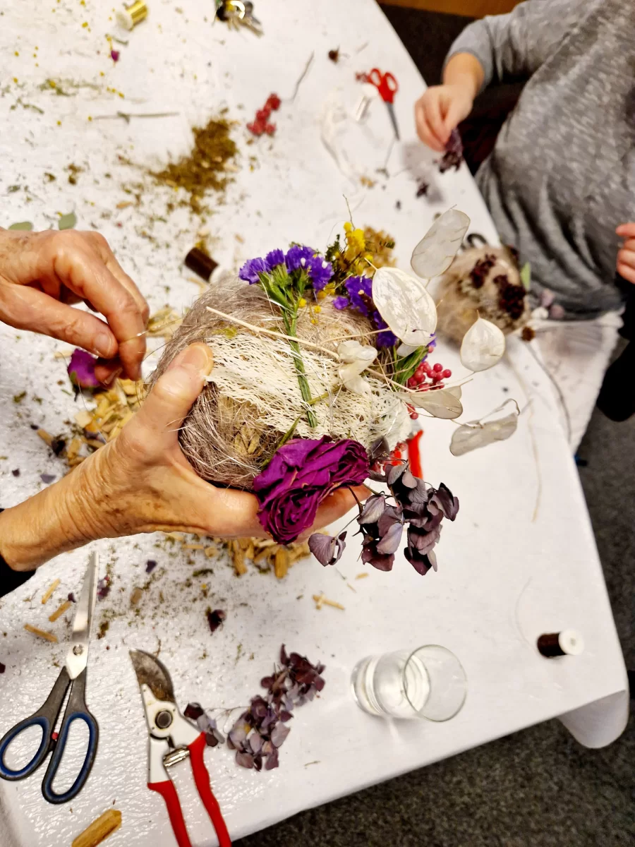 Dann gestalte gemeinsam mit Silvia Pfammatter – dipl. Floristin, Naturgestalterin sowie Trauer- und Sterbebegleiterin – eine Feuerkugel. Ein Symbol für das, was bleiben darf – und für das, was du loslassen möchtest. Ein Begleiter durch die «Längi Zyt».